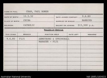 Chan, Paul HomerAustralian National University LibraryImage Fiji 1947 to 2019 Online -