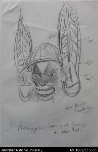 Ceremonial carving (mask size face) fr Malaggan, N. New IrelandAustralian National University LibraryImage Papua New Guinea 1970 to 2017 Online -