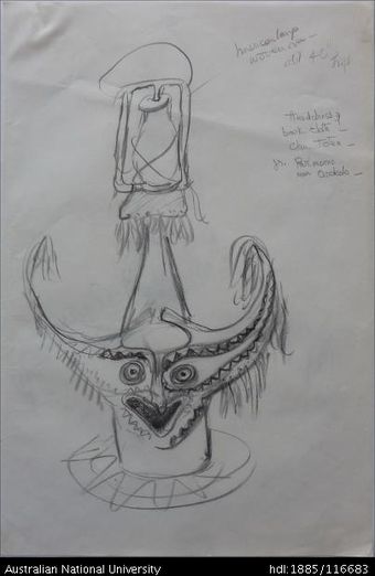 Headdress of bark cloth - clan totem, from Parimomo, near OrokoloAustralian National University LibraryImage Papua New Guinea 1968 to 2017 Online -