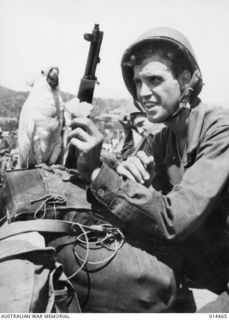 NEW GUINEA. C. 1945. PRIVATE JAMES H. SIMPSON OF LOS ANGELES, CALIFORNIA, FEEDING "TOJO" THE COCKATOO WITH AN ARMY BISCUIT. TOJO FLEW INTO THE AMERICAN LINES AT BUNA MISSION DURING SEVERE FIGHTING, ..Australian War MemorialImage Papua New Guinea Online