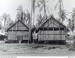 LUNGGA, GUADALCANAL, SOLOMON ISLANDS, 1944-02-29. TWO STOREHOUSES AT THE HEADQUARTERS CAMP OF THE DEPUTY SUPERVISING INTELLIGENCE OFFICER (DSIO), NAVAL INTELLIGENCE DIVISION, RAN. THE CAMP WAS THE ..Australian War MemorialImage Online