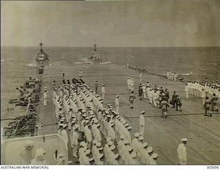 1942-12-13. TROOPS FROM THE 2/9TH BATTALION AIF AMIDSHIPS BY THE FUNNEL OF THE CORVETTE HMAS BROOME, EN ROUTE FROM MILNE BAY TO THE BUNA AREA. ROPE LADDERS ARE BEING RIGGED FOR ACCESS TO THE SHIP'S ..Australian War MemorialImage Papua New Guinea Online