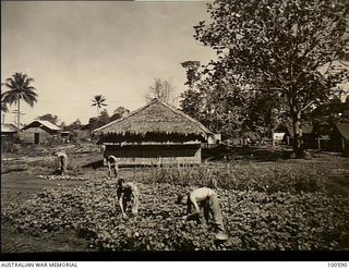 Lae, New Guinea. 1944-07-27. Members of 22 Platoon, F Company, 2/1st Guard Regiment, working in the unit vegetable gardenAustralian War MemorialImage Papua New Guinea Online