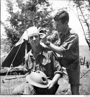 1942-11-19. NEW GUINEA. KOKODA. QUEENSLANDER PTE. S. WILSON RECEIVES MEDICAL ATTENTION AFTER A TWO DAYS WALK. HE WAS WOUNDED AT CLOSE QUARTERS. A JAPANESE BULLET TORE ITS WAY THROUGH THE FRONT OF ..Australian War MemorialImage Papua New Guinea Online