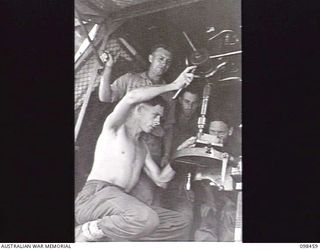 TOROKINA, BOUGAINVILLE, 1945-10-27. CORPORAL P. BURN, TOROKINA REHABILITATION TRAINING CENTRE, WHO IS STUDYING A COURSE OF ENGINEERING, BEING TAUGHT HOW TO OPERATE AN AUTOMATIC DRILLAustralian War MemorialImage Papua New Guinea Online