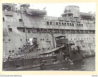 TOROKINA, BOUGAINVILLE, 1945-07-26. THE FIRST CONTINGENT OF "FIVE YEAR RELEASE PERSONNEL" TO LEAVE FOR THE RETURN TO AUSTRALIA. THE MEN, WHO HAVE COMPLETED FIVE YEARS IN THE ARMY, ARE BOARDING THE ..Australian War MemorialImage Papua New Guinea Online