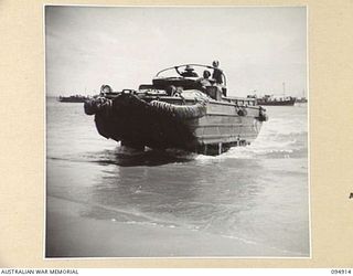 BORAM, NEW GUINEA, 1945-08-06. THE DUKW AMPHIBIOUS VEHICLE WORKING WITH HQ COMMAND, AUSTRALIAN ARMY SERVICE CORPS, 6 DIVISION BEING USED FOR THE TRANSPORT OF SUPPLIESAustralian War MemorialImage Papua New Guinea Online