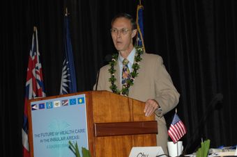 [Assignment: 48-DPA-09-29-08_SOI_K_Isl_Conf_AM] Insular Areas Health Summit [("The Future of Health Care in the Insular Areas: A Leaders Summit") at the Marriott Hotel in] Honolulu, Hawaii, where Interior Secretary Dirk Kempthorne [joined senior federal health officials and leaders of the U.S. territories and freely associated states to discuss strategies and initiatives for advancing health care in those communinties [48-DPA-09-29-08_SOI_K_Isl_Conf_AM_IOD_4743.JPG]National Archives at College Park - Still PicturesImage