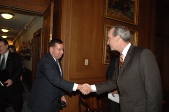 [Assignment: 48-DPA-02-05-08_SOI_K_Mori] Secretary Dirk Kempthorne [meeting at Main Interior] with delegation from the Federated States of Micronesia, led by Micronesia President Emanuel Mori [48-DPA-02-05-08_SOI_K_Mori_DOI_9633.JPG]National Archives at College Park - Still PicturesImage