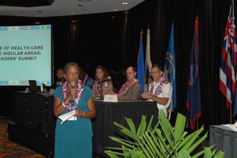 [Assignment: 48-DPA-09-29-08_SOI_K_Isl_Conf_AM] Insular Areas Health Summit [("The Future of Health Care in the Insular Areas: A Leaders Summit") at the Marriott Hotel in] Honolulu, Hawaii, where Interior Secretary Dirk Kempthorne [joined senior federal health officials and leaders of the U.S. territories and freely associated states to discuss strategies and initiatives for advancing health care in those communinties [48-DPA-09-29-08_SOI_K_Isl_Conf_AM_DOI_0419.JPG]National Archives at College Park - Still PicturesImage