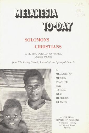 Melanesia to-day : Solomons Christians / by Donald Mayberry.National Library of AustraliaText