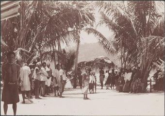 Dr. Welchman walking through villagers gathered for his return to Mara-na-tabu, Solomon Islands, 1906 / J.W. BeattieNational Library of AustraliaImage Online