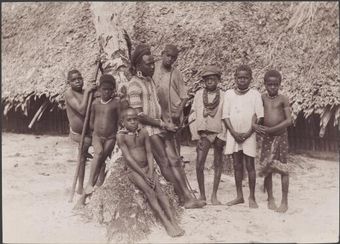 A man with a group of boys at Kombe on Florida Island, Solomon Islands, 1906 / J.W. BeattieNational Library of AustraliaImage Online