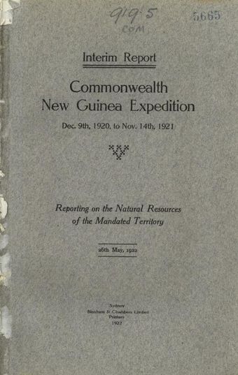 Interim report : reporting on the natural resources of the Mandated Territory 26th May, 1922 / Commonwealth New Guinea Expedition Dec. 9th, 1920, to Nov. 14th, 1921National Library of AustraliaText Papua New Guinea Online
