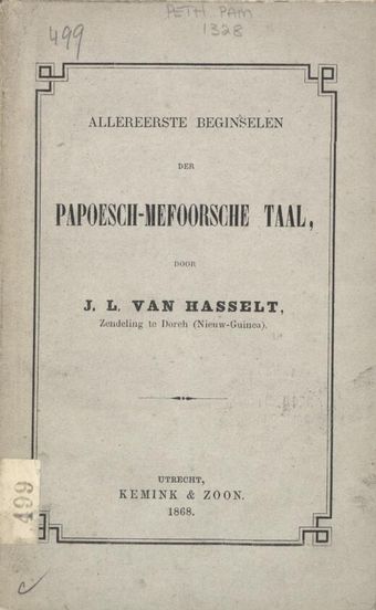 Allereerste beginselen der Papoesch-Mefoorsche taal door / J.L. Van HasseltNational Library of AustraliaText Papua New Guinea