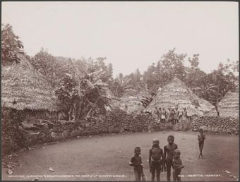 Villagers at dancing ground in the village of Te Motu, Santa Cruz Islands, 1906 / J.W. BeattieNational Library of AustraliaImage Online