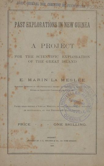 Past explorations in New Guinea, and a project for the scientific exploration of the great island / by E. Marin la Meslee.National Library of AustraliaText