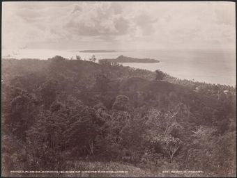 Honggo, with the islands of Hagima and Mendoliana in background, Solomon Islands, 1906 / J.W. BeattieNational Library of AustraliaImage Online
