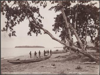 Beach at Pago Pago, Savo, with Guadalcanar in background, Solomon Islands, 1906 / J.W. BeattieNational Library of AustraliaImage