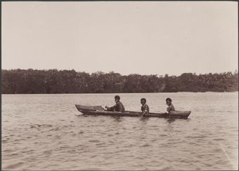 Three men of Port Adam in a canoe, Malaita, Solomon Islands, 1906 / J.W. BeattieNational Library of AustraliaImage