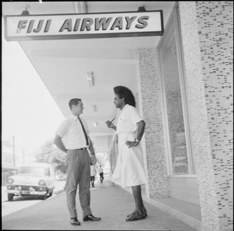 Leone in front of Fiji Airways office, Fiji, 1966, 1 / Michael TerryNational Library of AustraliaImage Fiji Online