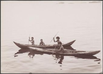 People of Choiseul in two canoes on the Pachu River, Solomon Islands, 1906 / J.W. BeattieNational Library of AustraliaImage Online
