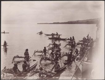 Solomon Islanders in canoes alongside the Southern Cross for trade at Graciosa Bay, Santa Cruz Islands, 1906, 1 / J.W. BeattieNational Library of AustraliaImage Online
