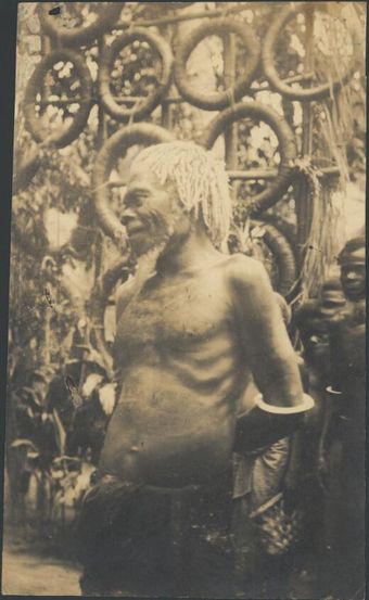 Chief in front of currency, Toma, New Guinea, ca 1930 / Sarah ChinneryNational Library of AustraliaImage Papua New Guinea 1924 to 1937 Online