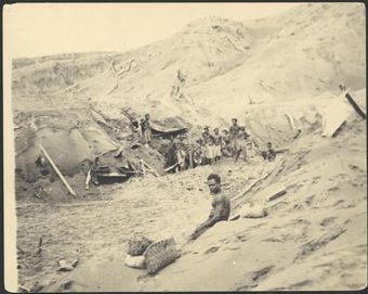 Papuan men digging out their village houses after the eruption, Rabaul, New Guinea, 1937, 1 / Sarah ChinneryNational Library of AustraliaImage Papua New Guinea