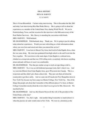 Oral History Interview with Rita Harvey, December 8, 2001National Museum of the Pacific War/Admiral Nimitz FoundationText