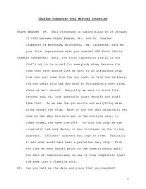 Oral History Interview with Charles Carpenter, January 29, 1989National Museum of the Pacific War/Admiral Nimitz FoundationText