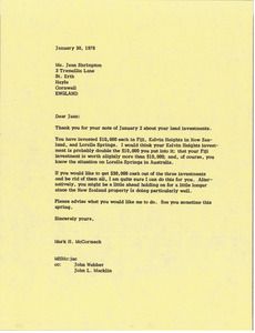 Letter from Mark H. McCormack to Jean ShrimptonSpecial Collections and University Archives, University of Massachusetts Amherst LibrariesText Fiji