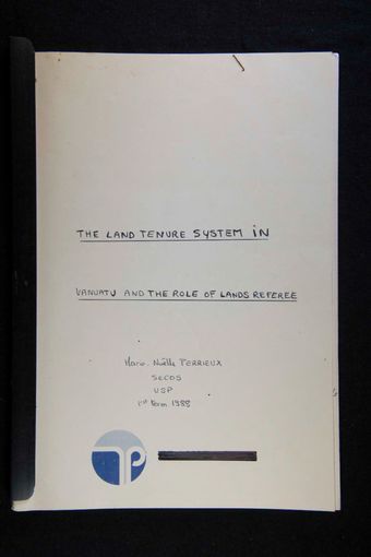 The land tenure system in Vanuatu and the role of lands referee by Marie-Noelle Ferrieu, 1988Te Puna Vai Marama Cook Islands Centre for ResearchText Cook Islands Online -