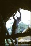 Men working on the ridge piece of house thatching, and putting it on the roofUC San Diego, Special Collections and ArchivesImage Solomon Islands