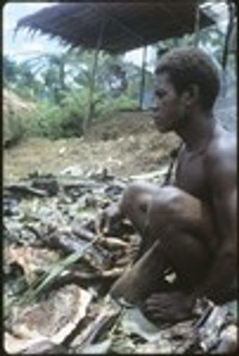 Man sitting besides cooked porkUC San Diego, Special Collections and ArchivesImage Solomon Islands