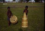 Two boys holding Sepik fish traps, Angoram, [Papua New Guinea, 1969?]University of Queensland LibraryImage Papua New Guinea -