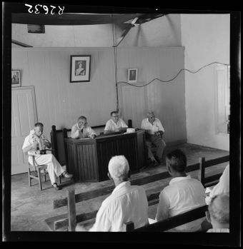 Island council meeting, ManahikiAlexander Turnbull LibraryImage Cook Islands