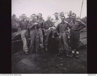 Informal group portrait of officers of 2 Australian Mountain Battery (Artillery). From left to right: NX34978 Captain Raymond Keith (Ray) Blackeby; Lieutenant (Lt) R 'Bing' Miller; Lt Jim Forbes; ..Australian War MemorialImage Papua New Guinea Online