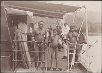 Three young women of Vella Lavella on the Southern Cross, Solomon Islands, 1906 / J.W. Beattie