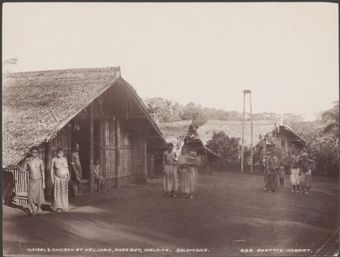 Villagers standing outside a building at Halihan, Malaita, Solomon Islands, 1906 / J.W. Beattie