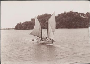 The Southern Cross at anchorage off Mara-na-tabu, Solomon Islands, 1906 / J.W. Beattie