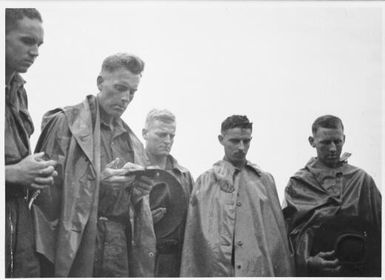 Father English conducts a burial service for three NCOs from the 2/3rd Australian Independent Company, Orodubi, New Guinea, 30 July, 1943