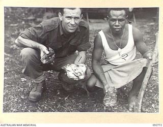 SORAKEN AREA, BOUGAINVILLE ISLAND, 1945-04-02. LOOKING TOWARDS TAIOF ISLAND ALONG THE BEACH FROM THE CAMP AREA, A COMPANY, 26 INFANTRY BATTALION
