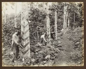 - Unpacking Cocoa Trees, early 1900s, Sāmoa, by Thomas Andrew. Te Papa (O.001062). Six men, with undercuts and ponytails - possibly part of a Chinese labour force - sitting on planks and unpacking wooden crates with plants inside. The man nearest the camera (on the right) has a bandaged foot. 16, 22