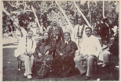 - Ariki Makea Takau, Pa Ariki, Tinomana Ariki, Daniella Makea and others. From the album: Cook Islands, circa 1896, Rarotonga, maker unknown. Te Papa (O.025525). 107mm, 168mm