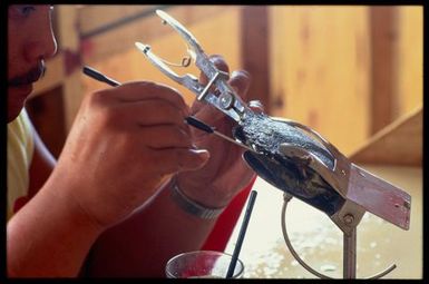 - Pearl technician seeding an oyster, Manihiki, Cook Islands, 1981-1999, Manihiki, by Glenn Jowitt. Gift of Glenn Jowitt Estate, 2015. Te Papa (CT.065222).