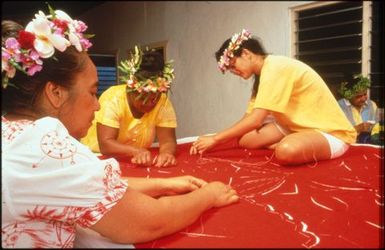 - Mrs Tokerau Munro, making tivaevae, circa 1992, Cook Islands, by John Daley. Gift of John Daley, 2012. © Te Papa. Te Papa (CT.063517).