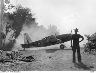 THE SERVICING PARTY OF NO. 24 (VENGEANCE) SQUADRON RAAF AT WORK BESIDE THE AIRSTRIP UNDER A MAKESHIFT TENT