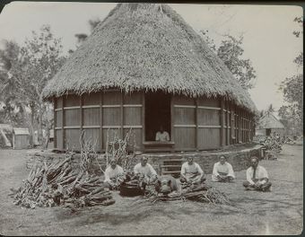 - People of Nukunuku, Lakeba, Fiji, photographed between 1909 and 1912 by Arthur Maurice Hocart. From 1909 to 1912 Hocart was headmaster of Lau Provincial School in Lakeba, Fiji. Inscriptions: Verso - centre - Nukunuku types (Waitambu on right) Quantity: 1 b&w original photographic print(s). Physical Description: Toned gelatin silver print 7.8 x 9.4 cm