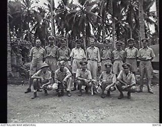LUNGGA, GUADALCANAL, BRITISH SOLOMON ISLANDS PROTECTORATE. 1943-10-14. RAN OFFICERS WITH THREE OFFICERS FROM THE UNITED STATES FLEET AIR PHOTOGRAPHIC GROUP ONE. LEFT TO RIGHT, BACK ROW: SUB ..